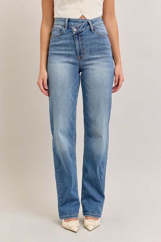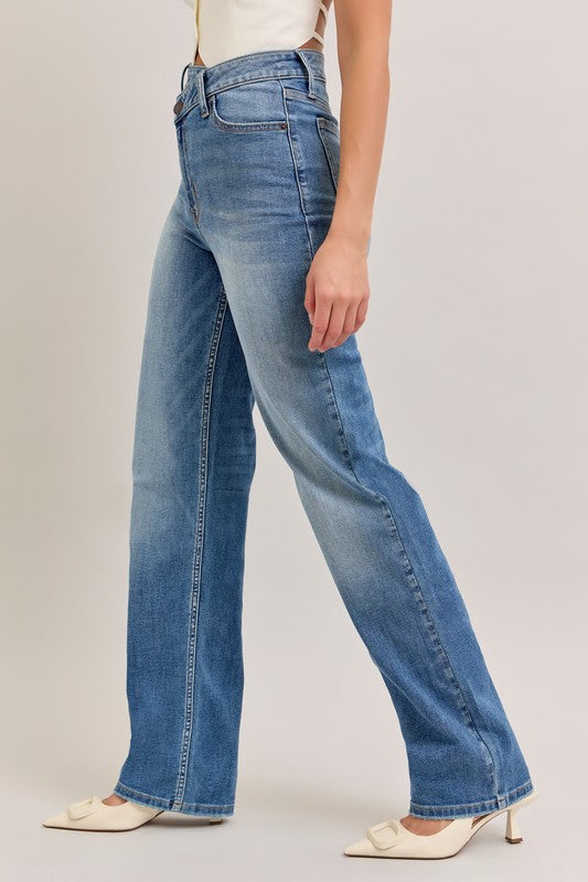 These jeans have the capability of adding a built in elastic band with hook and eye closures for the ultimate tummy control experience. No need to unhook and rehook each time you use the restroom either as the elastic stretches and slides down and back up easily with your pants while still being hooked together. We are obsessed with this technology!