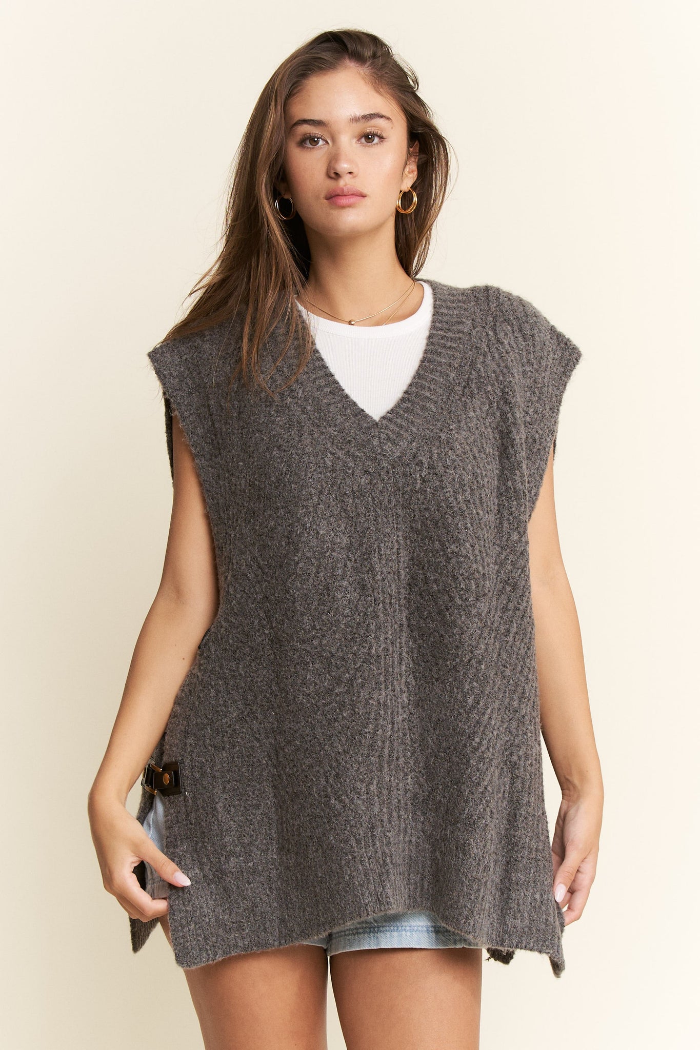 Buckle Oversized Sweater Vest, Charcoal (L/XL)