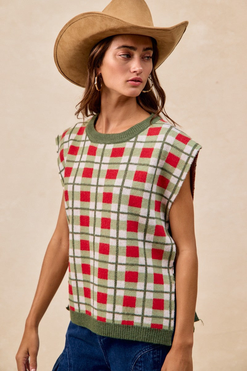 Christmas Plaid Tie Sweater Vest