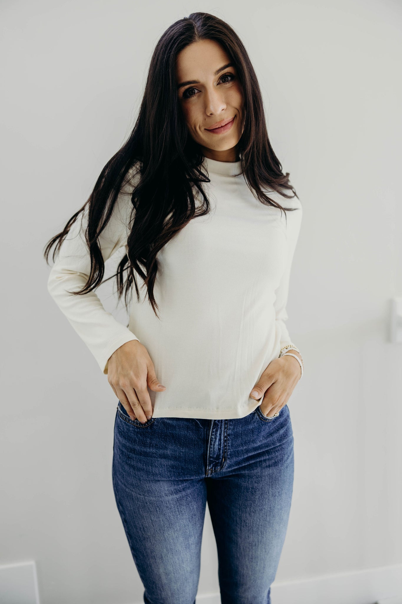 High Neck Long Sleeve Tee- Ivory (XS, M, L, XL, 2x)