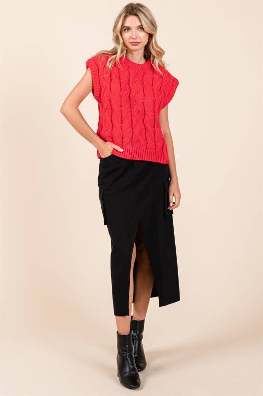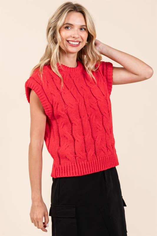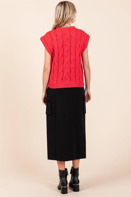 Cable Knit Sweater Vest- Red (1X, 2X)