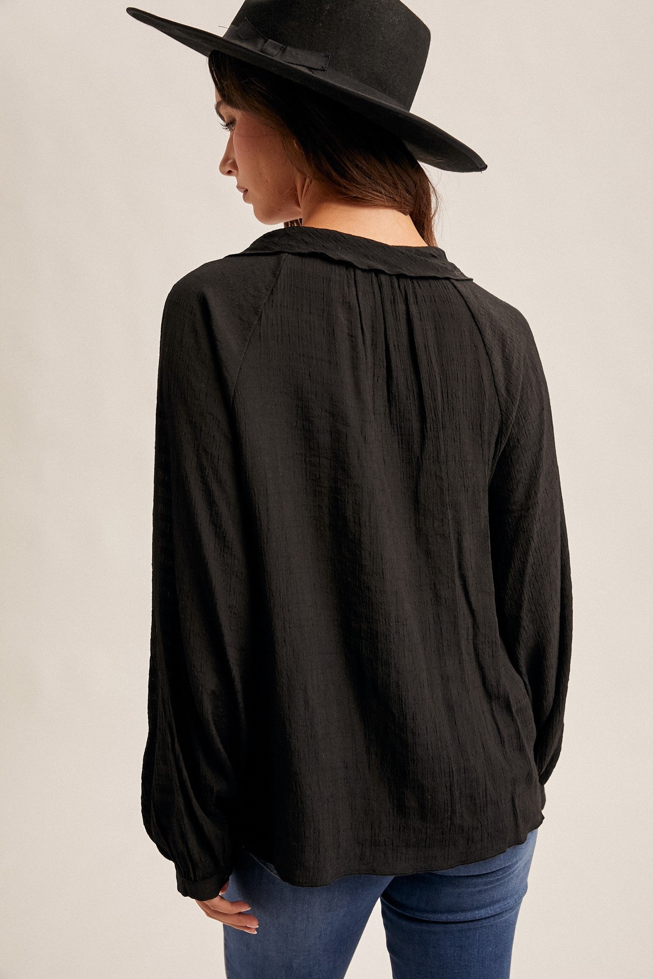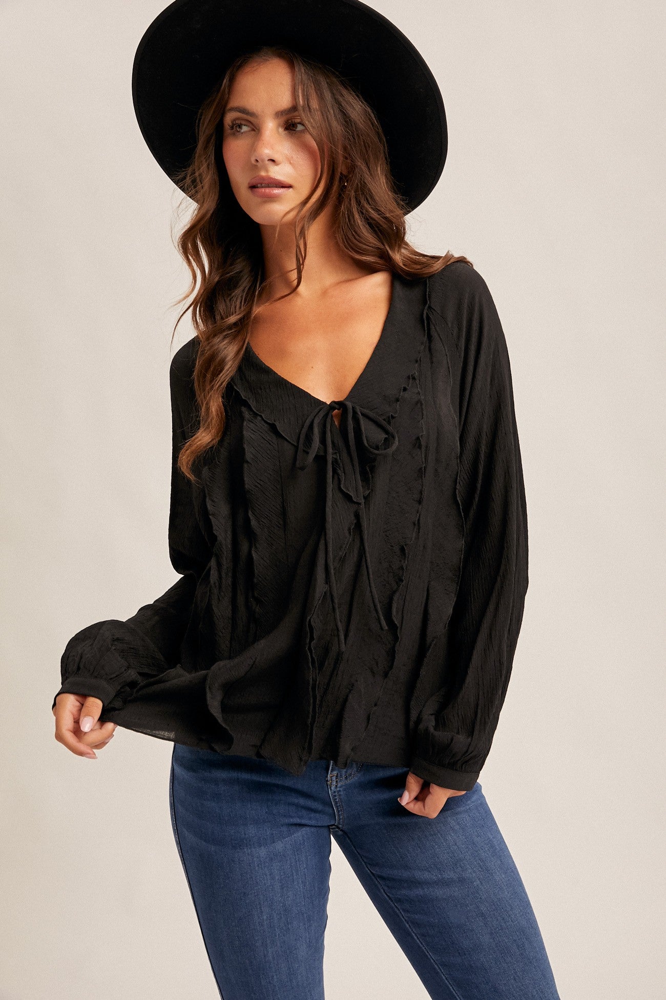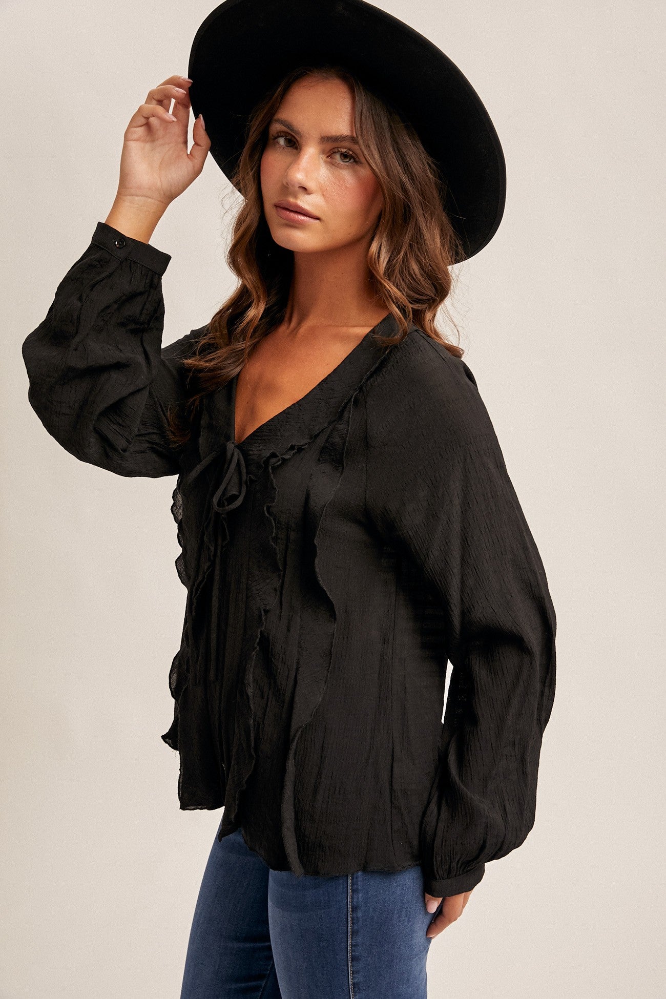 V-Neck Ruffle Long Sleeve Blouse (S-L)